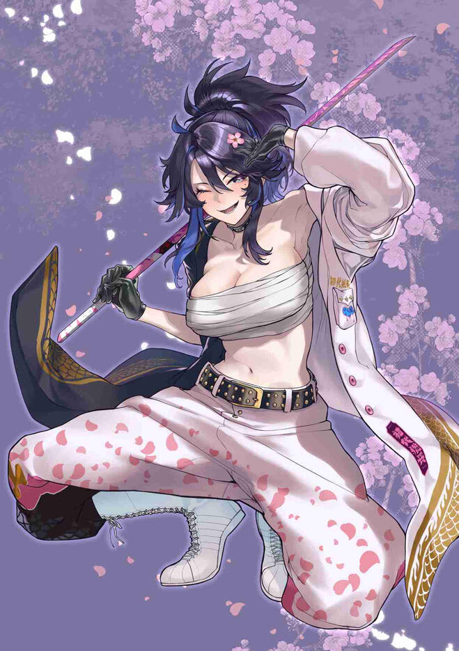 Yumetsuki is in top-shape physical condition and is a formidable opponent in close combat, where she utilizes her Quirk to force her opponents to fight without breathing or risk getting into a hallucination nightmare.She uses a pink wooden katana as a weapon to knock out villains in order to leave them for the police to find. Since what she does without a license is considered criminal, and knowing she is already breaking the law, Yumetsuki has no shame in breaking other laws in order to capture villains, but she still tries to not involve innocent civilians in her fights.